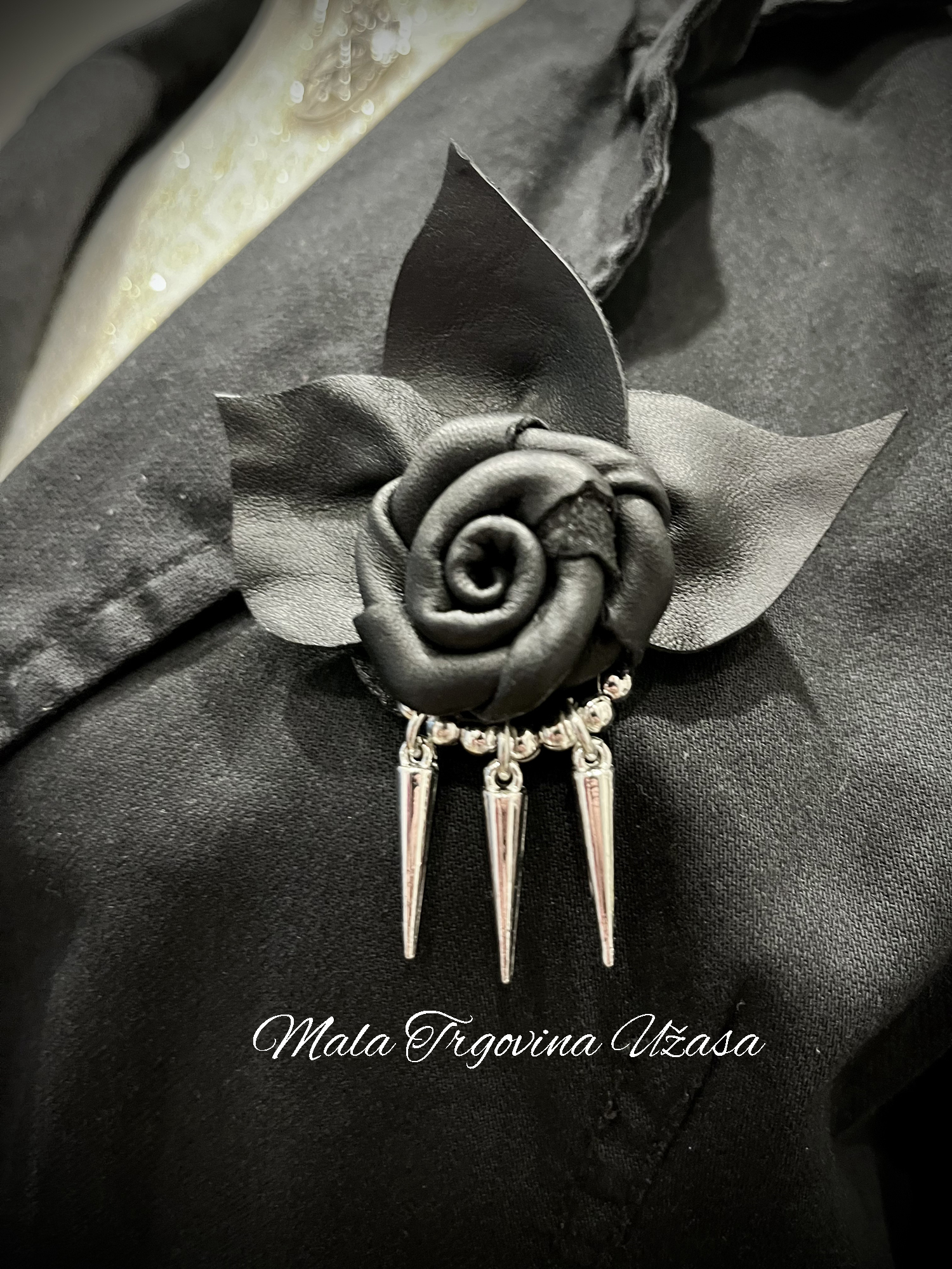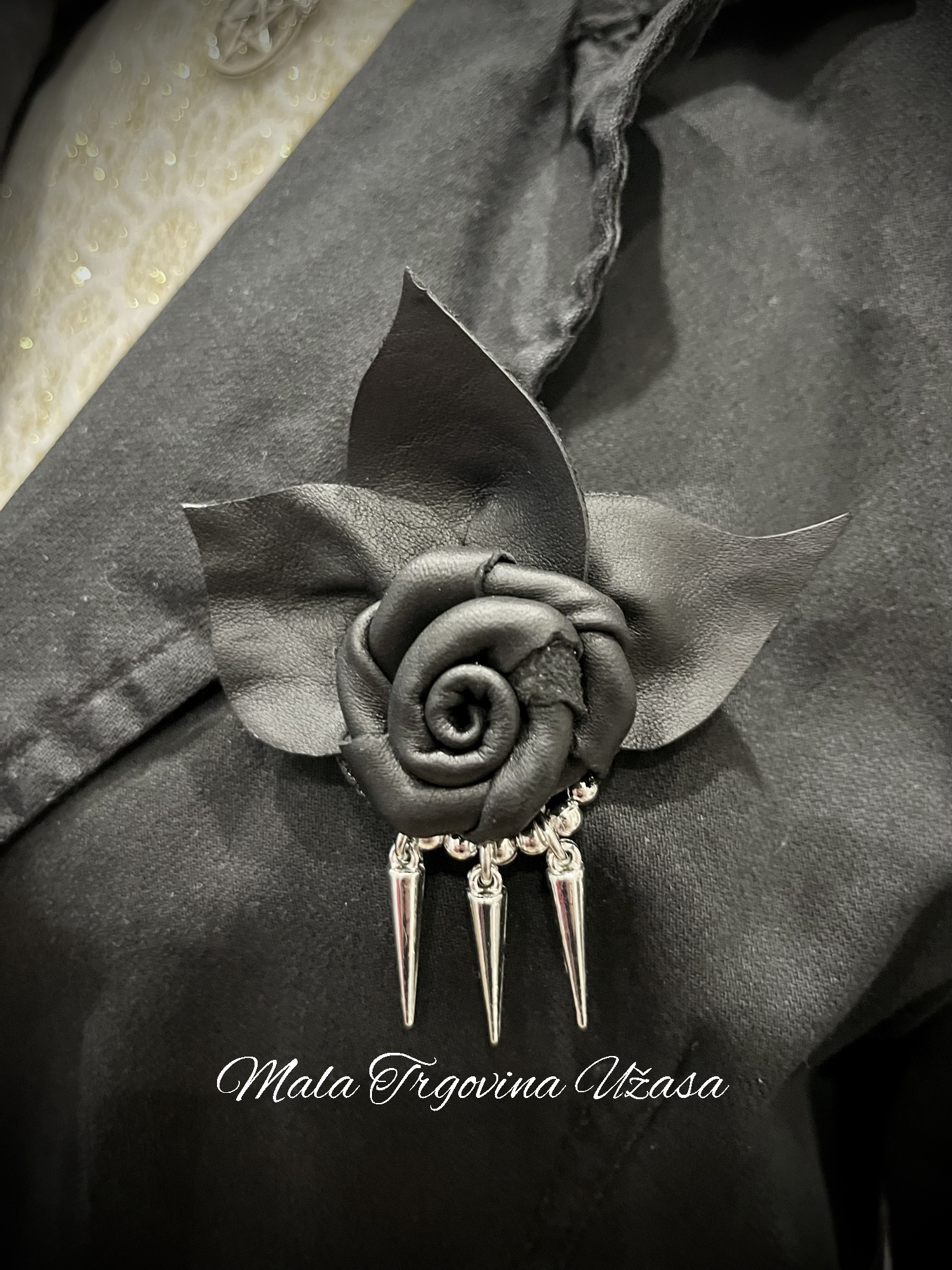 Broš Kožna Ruža sa spajkovima
