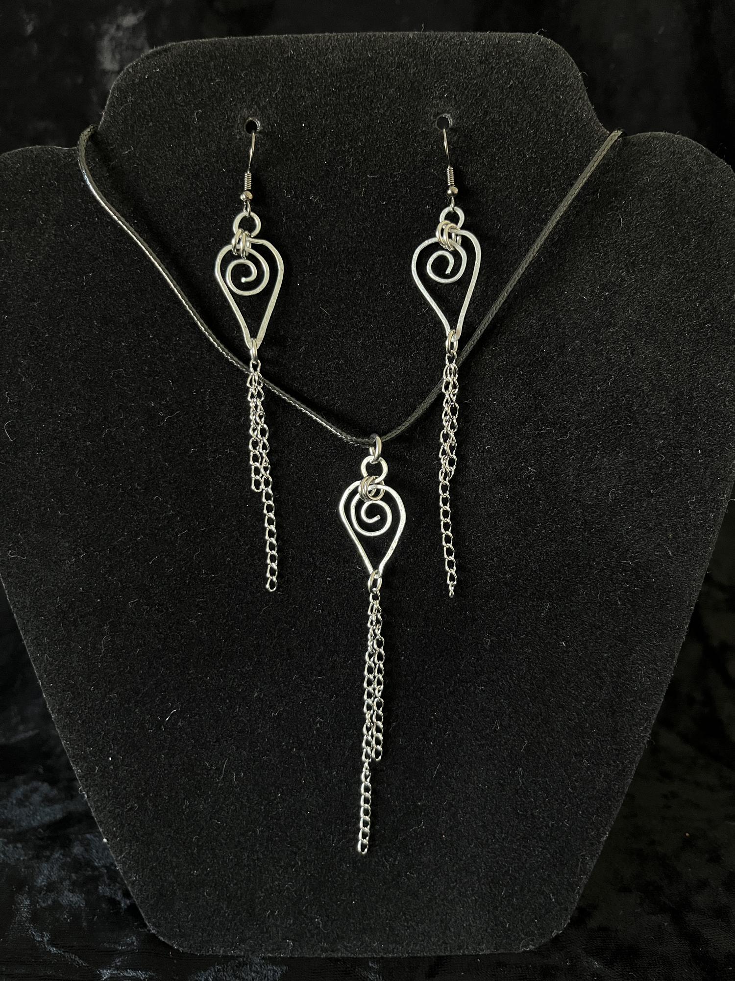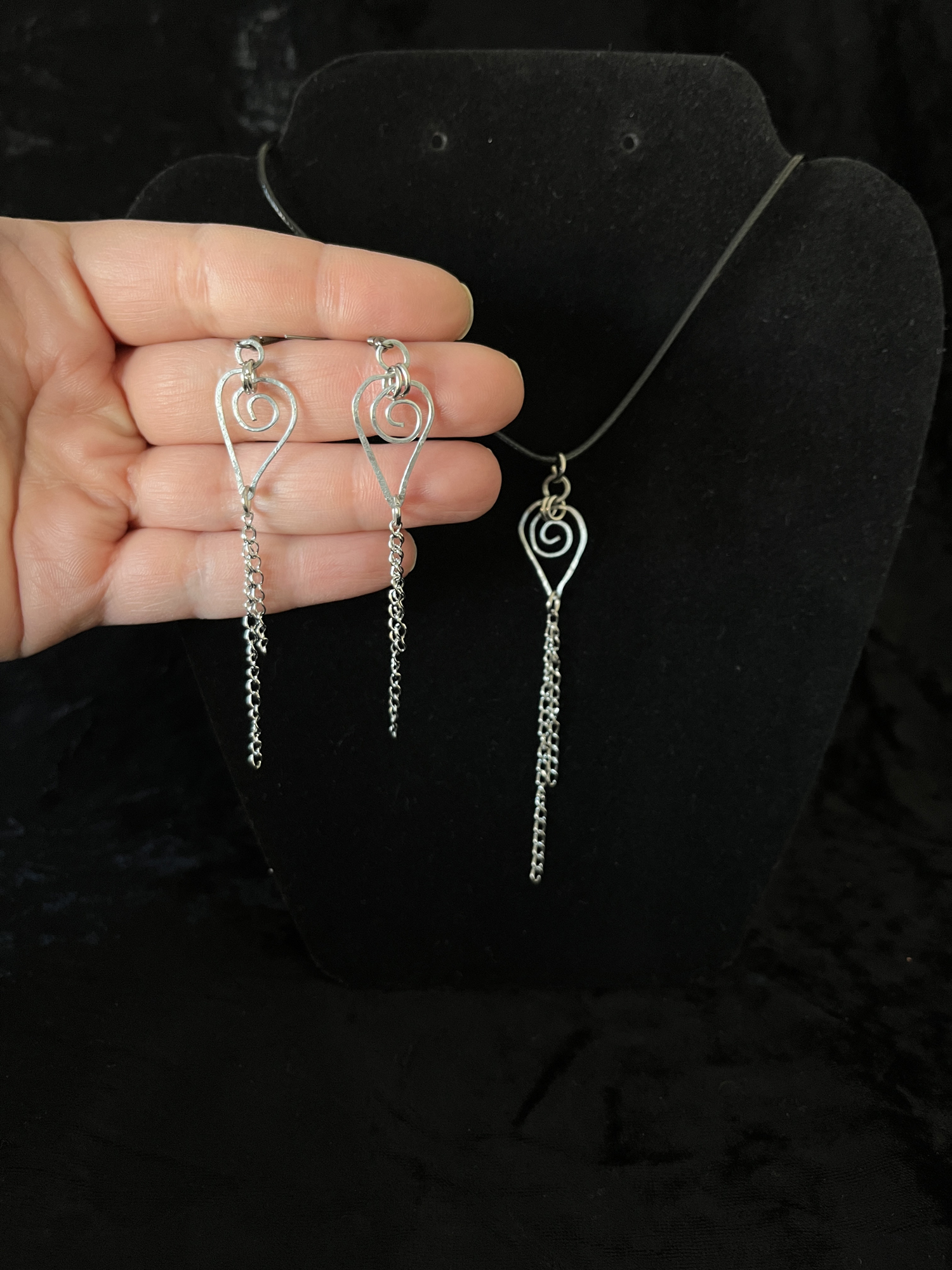 Spiral goddess komplet naušnice i lančić su napravljeni od lagane aluminijske žice i metalnih lančića. Aluminij je dobar izbor za nakit jer ne mijenja boju, ne hrđa i ne ostavlja tragove na koži i odjeći.